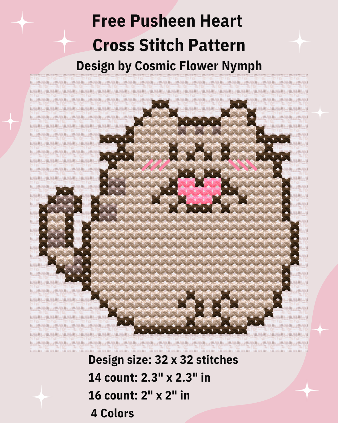 Pusheen Heart Cross Stitch Pattern